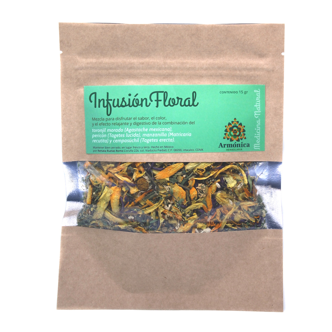 Mezcla para disfrutar el sabor, el color y el efecto relajante y digestivo de la combinación floral del